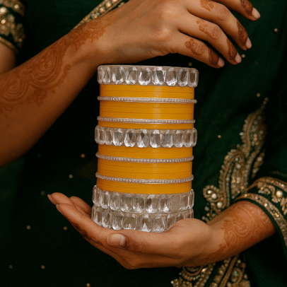 Elegant Yellow Crystal Studded Bangle Set for Women (Copy)