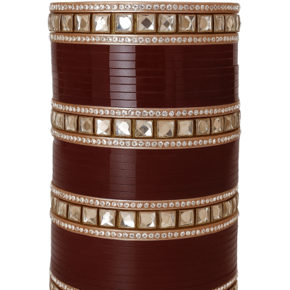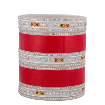 : Elegant Red Bridal Chura Set with Pearl and Stone Detailing