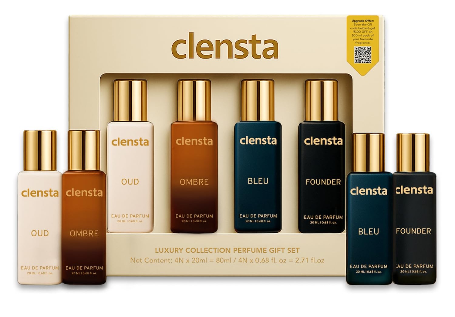 Clensta Luxury Long Lasting Perfume Gift Set for Man Pack of 4 x 20ml Eau De Parfum Combo EDP Perfume Gift Set for Men Boyfriend Husband | Bleu, Founder, Ombre, Oud