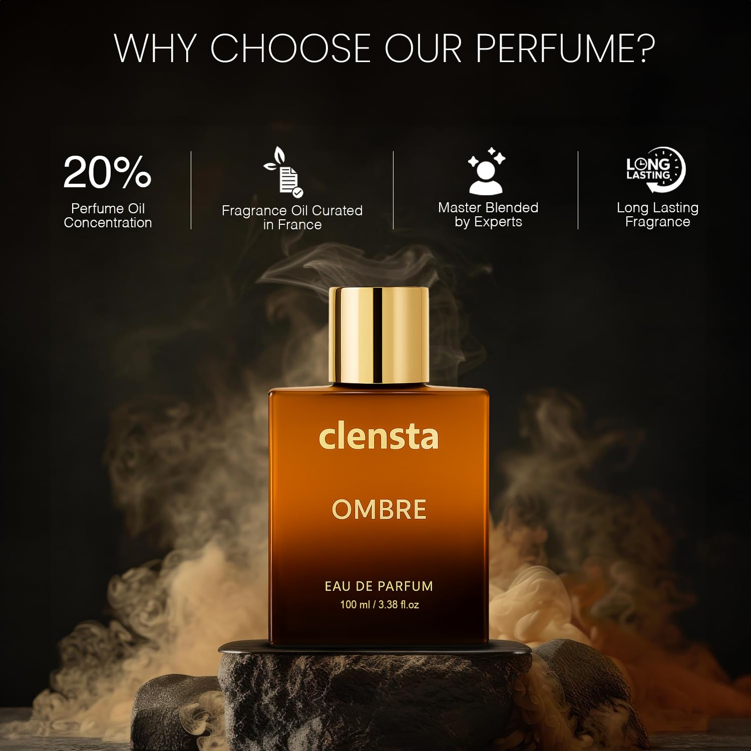 Clensta Luxury Ombre Eau De Parfum 100ml EDP Perfume for Man Long Lasting with Oud, Benzoin, Leathery