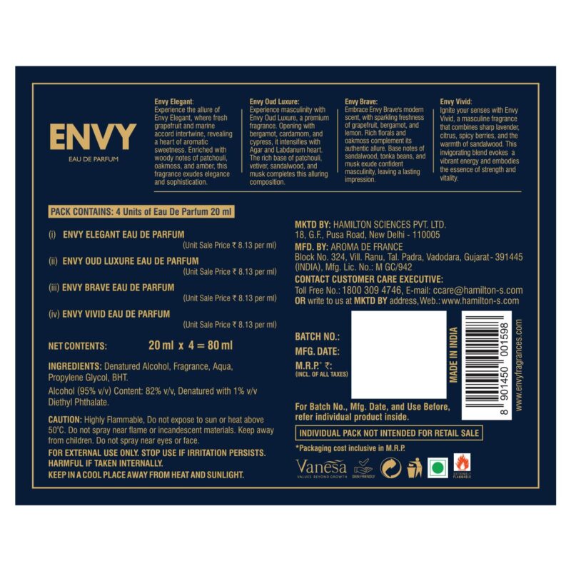 ENVY Gift Set for Men - Oud Luxure, Elegant, Vivid, Embrace - 20ML Each | Long Lasting Luxury Perfume EDP | Perfume Gift Set for Men | Perfume Set for Men Gift Pack | Perfume Gift Set