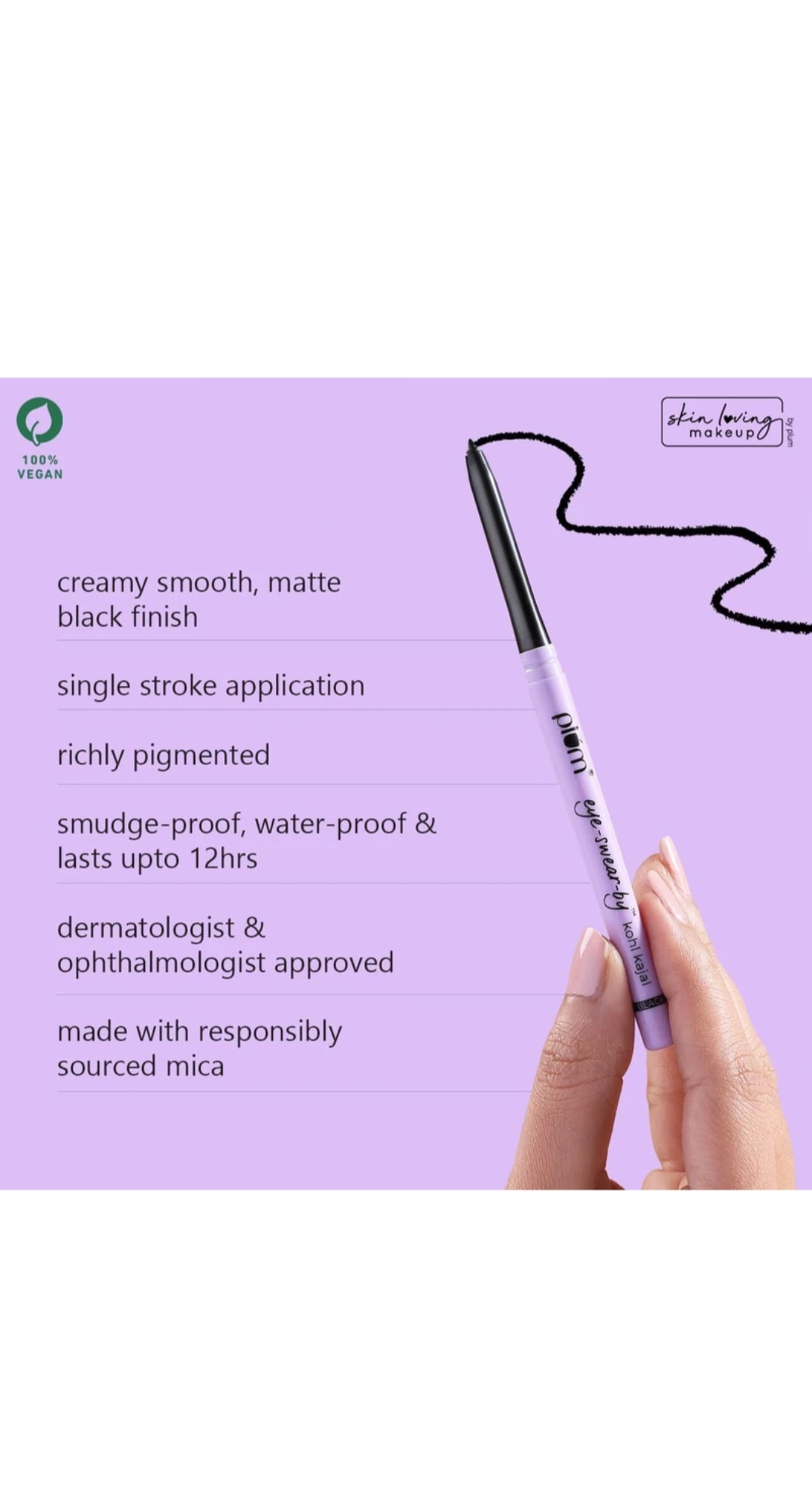 Plum Eye-Swear-By Kohl Kajal – Deep Black | Smudge-Proof | Water-Proof (Deep Black, 0.7 g)