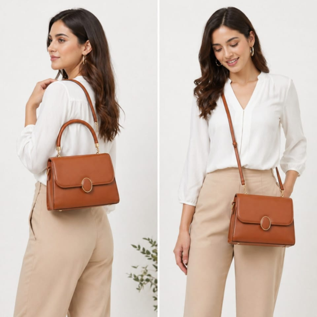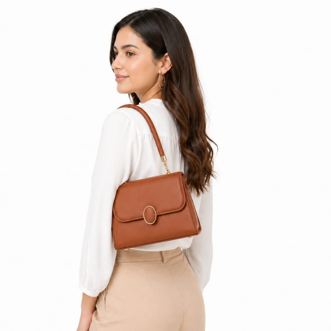Premium Aesthetic: Is bag ka structured design aur Rich Tan Brown color isse ek designer aur expensive look deta hai.